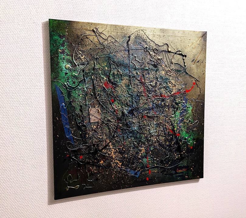 Un triptyque de 90 x 130 cm peint à l’acrylique et mis en relief au gel durcisseur, réalisé pour habiller les murs de la salle municipale de la mairie de la Motte-Servolex.