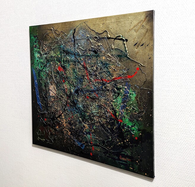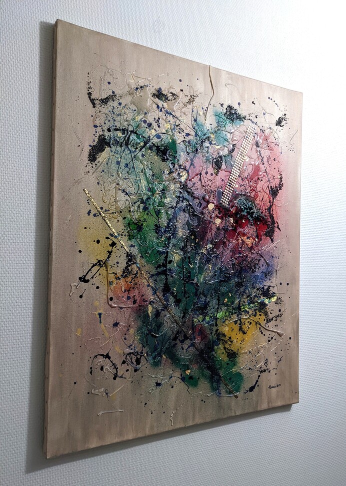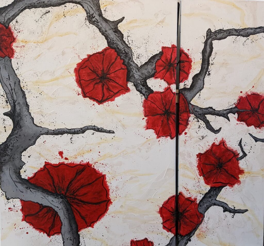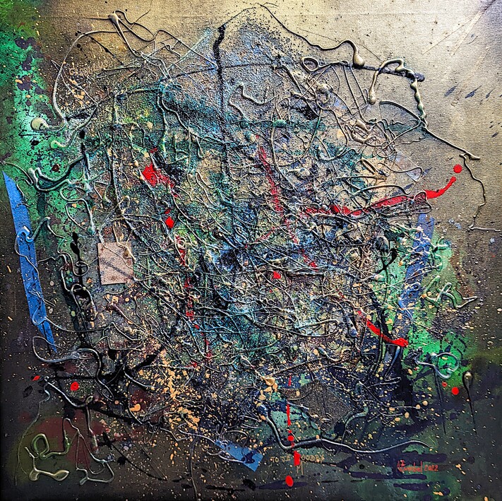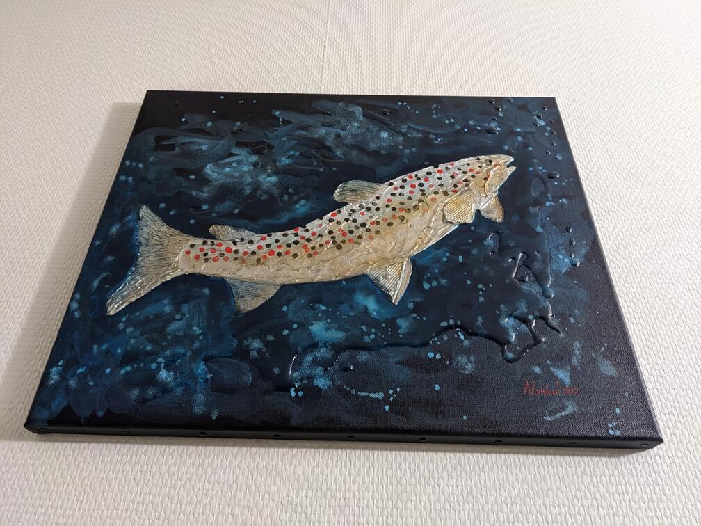 Un triptyque de 90 x 130 cm peint à l’acrylique et mis en relief au gel durcisseur, réalisé pour habiller les murs de la salle municipale de la mairie de la Motte-Servolex.
